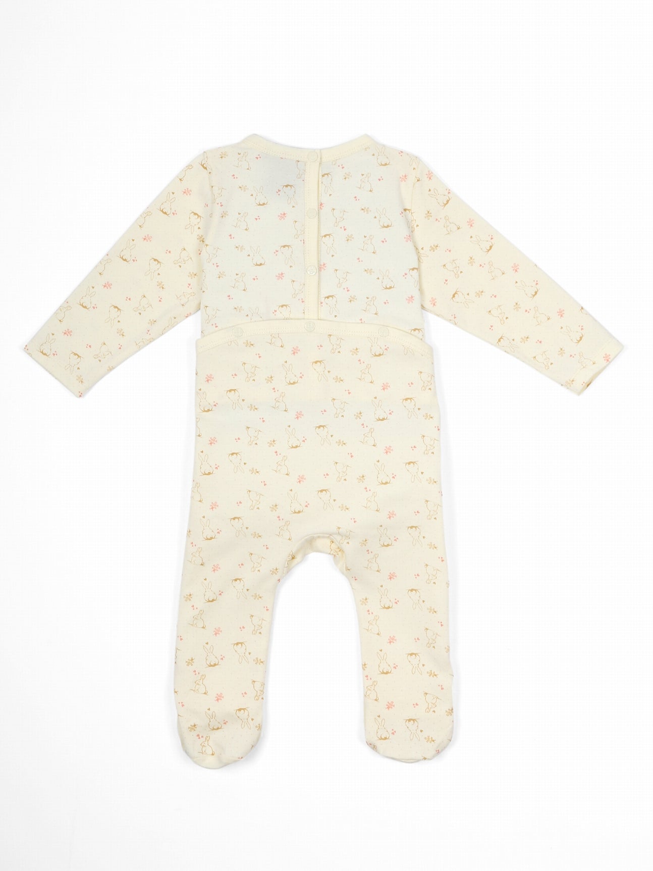Pyjamas en jersey coton élasthanne. Encolure et bas de manches bordés d'un biais. Ouverture pressionnée au dos. Impressions sur le devant. Composition: 95% coton 5% élasthanne.