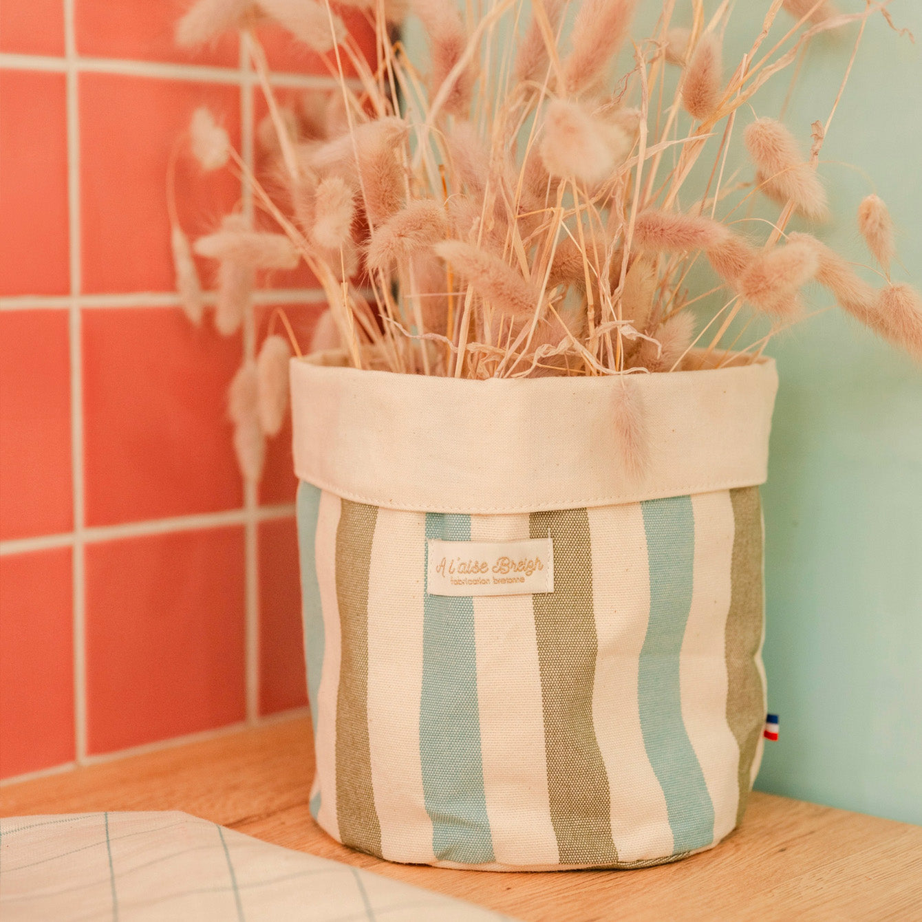 Ce panier est pensé, tissé, confectionné et imprimé avec soin dans nos ateliers à Morlaix.