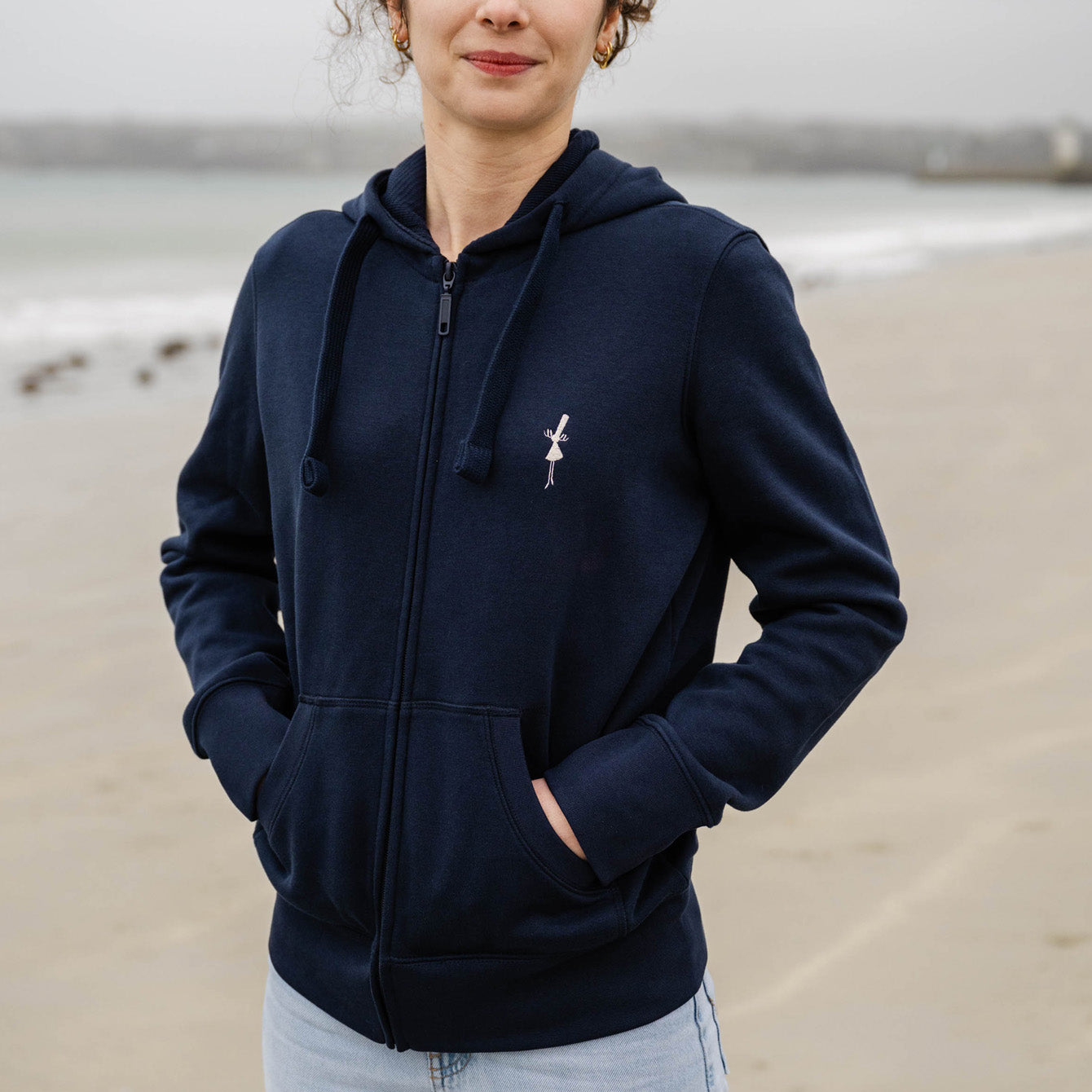 Notre sweat zippé à capuche, idéal pour lier style et confort.